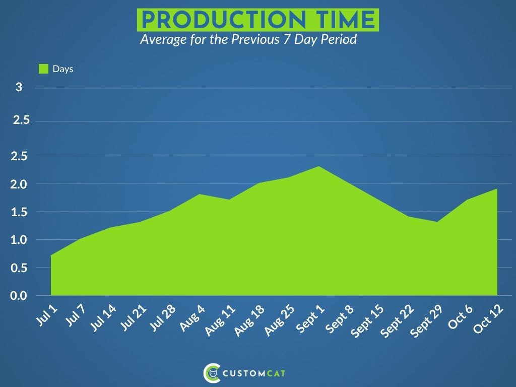 *Production Averages represent historical production data from the 7-day period indicated above. This is not meant to act as an indication of how long a particular order has taken to ship, but rather an average of all orders processed on that day. These averages are not meant to represent current lead times or guarantee a specific production time.